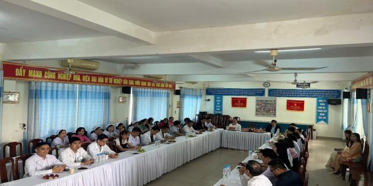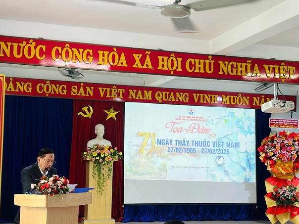 Sáng ngày 26/02/2026, Trung tâm Y tế khu vực Liên Chiểu tổ chức Tọa đàm kỷ niệm 71 năm Ngày Thầy thuốc Việt Nam (27/2/1955-27/2/2026). Tham dự buổi tọa đàm có sự hiện diện của BSCKII. Nguyễn Thành Tân – Bí thư Đảng ủy, Giám đốc Trung tâm; BSCKI. Trần Viết Tiến, Phó Giám đốc Trung tâm; ThsBS. Bùi Long Dũng, Phó Giám đốc Trung tâm cùng các đồng chí trong Ban Chấp hành Đảng ủy, Chủ tịch Công đoàn, Bí thư Đoàn thanh niên và các đồng chí là Trưởng, phó/Phụ trách các khoa/phòng/trạm Y tế, điều dưỡng trưởng/Hộ sinh trưởng/Kỹ thuật Y trưởng các khoa trong bệnh viện.